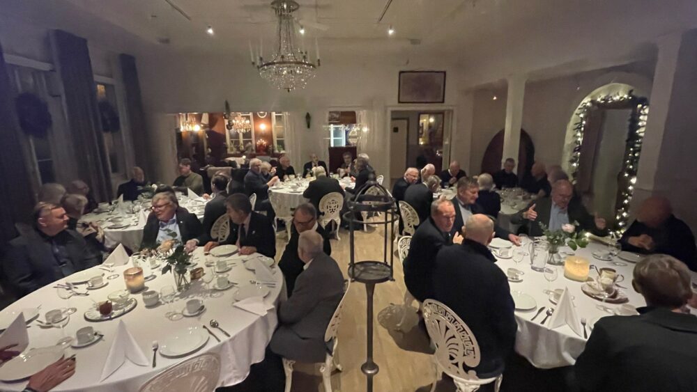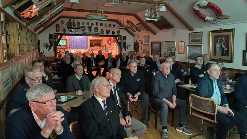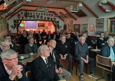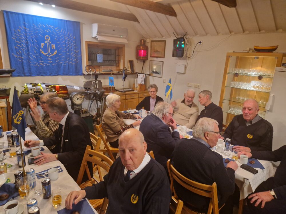 Ett fullsatt Marinstugan då Flottans män tar plats på scen, det bjuds på god mat o sång.