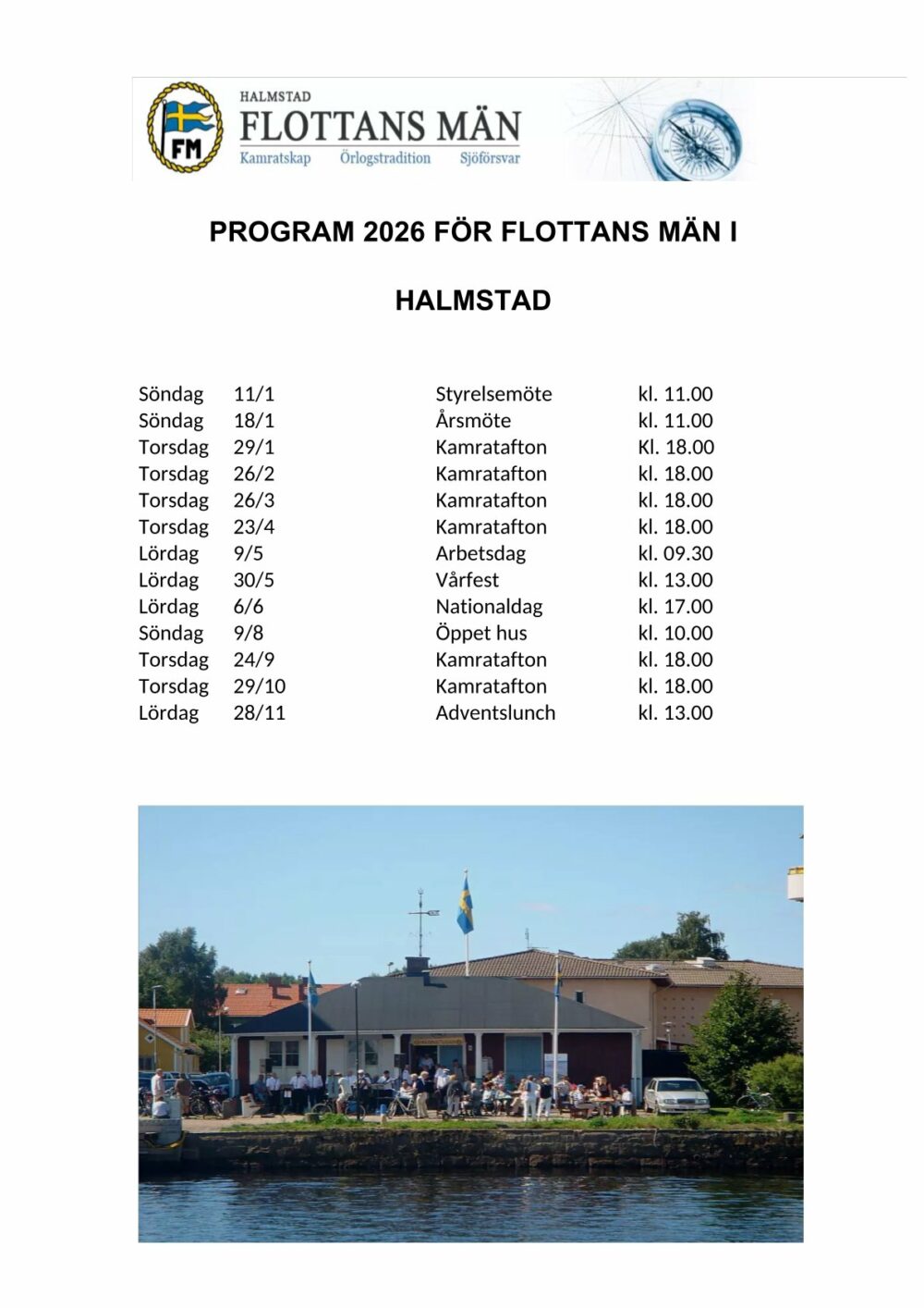Den 29 januari har vi vår första Kamratafton. Vi startar som vanligt kl. 18.00 i Marinstugan. Föredrag av vår egen medlem Mikael Forsman under rubriken MITT KINAÄVENTYR. Du anmäler dig genom att kontakta vår klubbmästare; Mats[...]