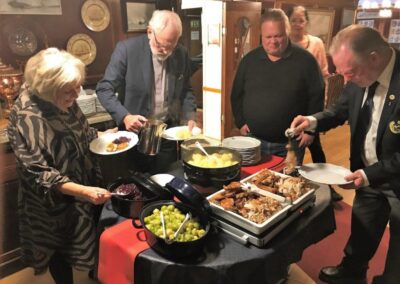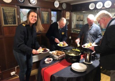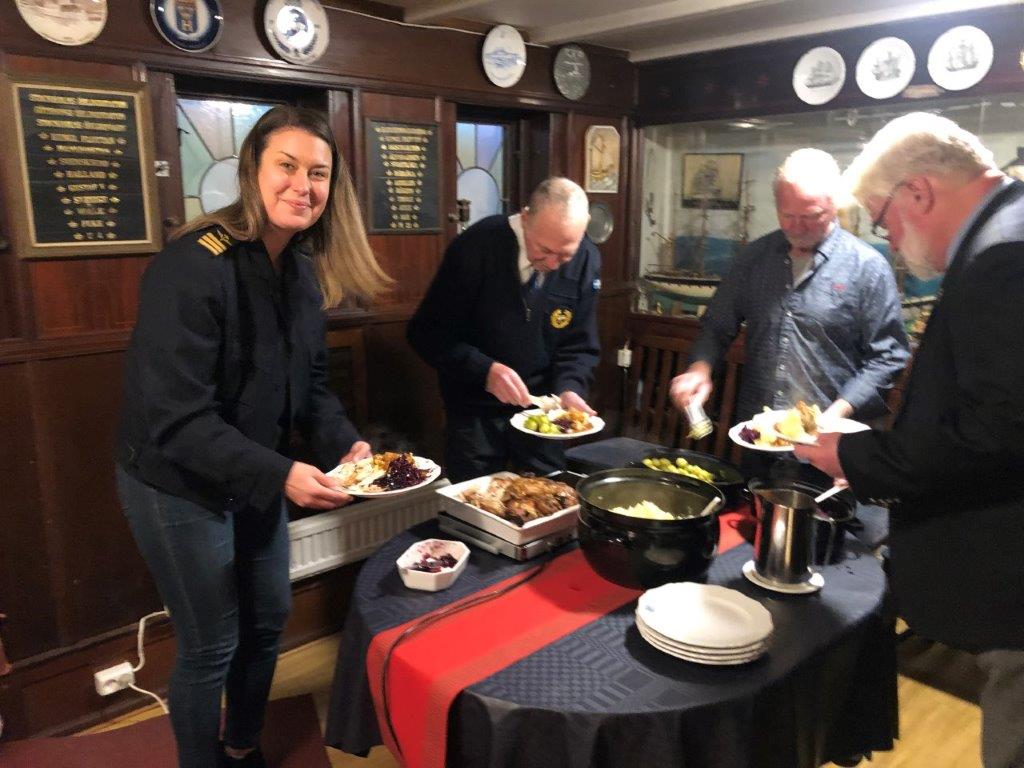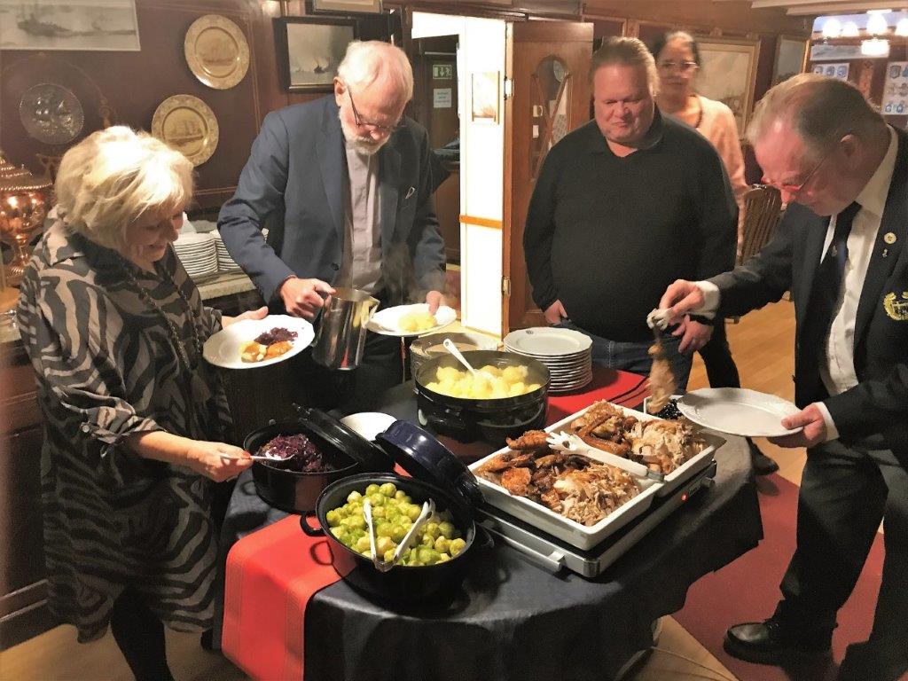 Kvällens måltid hade tillagats av Mobila Kocken som inkl. personal, bjöd upp till kalkon med tillbehör samt äppelkaka med vaniljsås till dessert. Inte att förglömma, god dricka därtill.