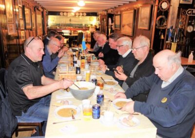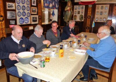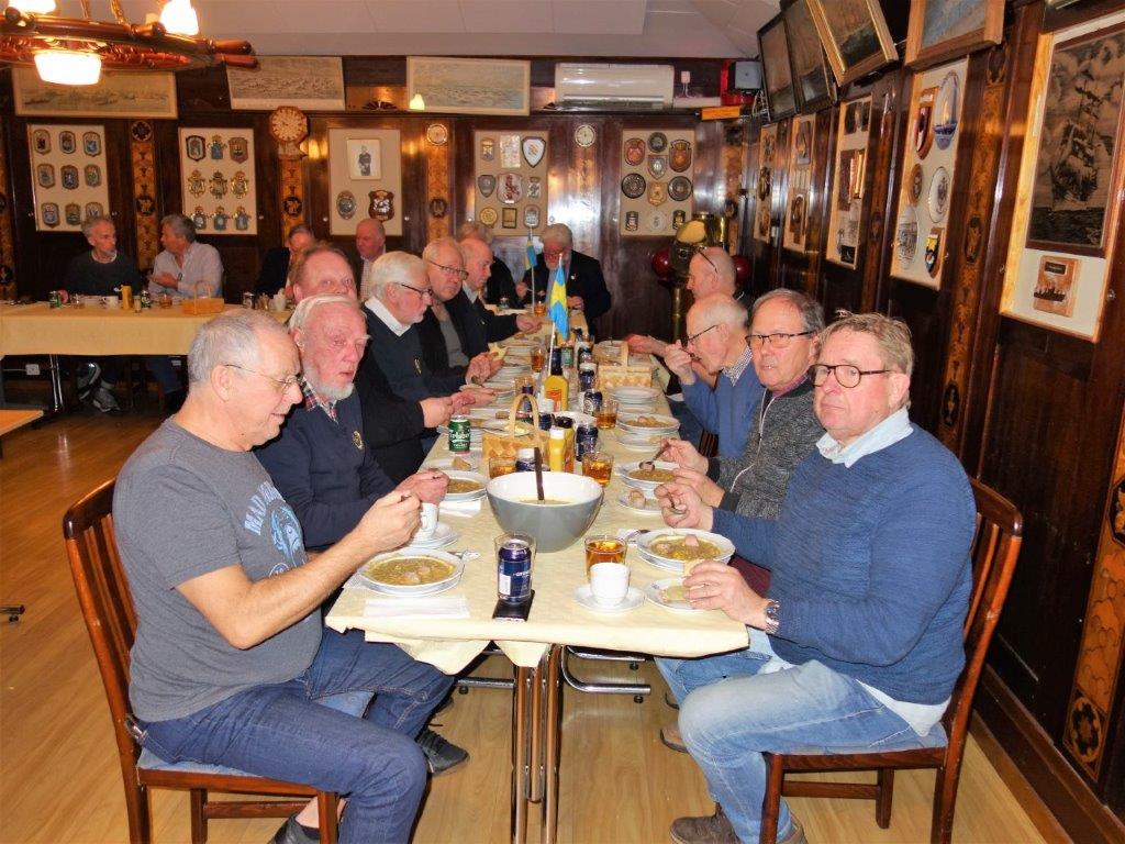 Kamratafton i febr. 2022 blev en efterlängtad träff och samvarostund. 25 personer var närvarande. Det fans mycket att prata om efter en lång pandemitid, där Marinstugans ordinarie festligheter har varit mycket begränsade. Faran är inte över, men med respekt för varandra, hålla avstånd och tvätta händerna, så kan vi börja hålla årets schema.