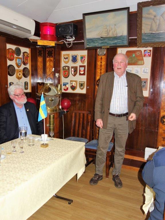 Vi fick vara med om en mycket intressant och trevligt framförd föreläsning av Birger Ekdahl, tidigare ägare till Ulvereds hjorthägn, som berättade om sitt tidigare liv under vattnet. Han var röjdykare i Marinen och berättade om sina dykäventyr i alla dess former och många var de faror han hade varit med om. Det var en fängslande föreläsning.