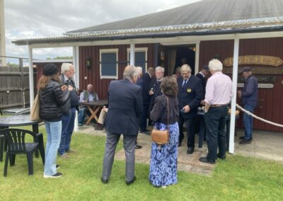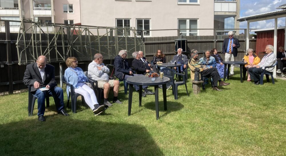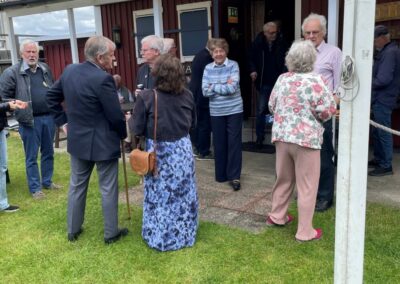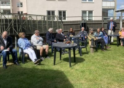 Som vanligt samlades deltagarna för mingel i trädgården med korvgrillning. Det var hård åtgång på korvarna. Vissa hot om regn förekom men till slut så dök solen fram som sig bör.