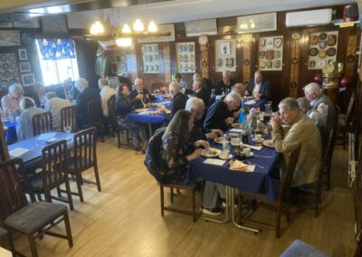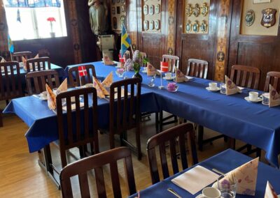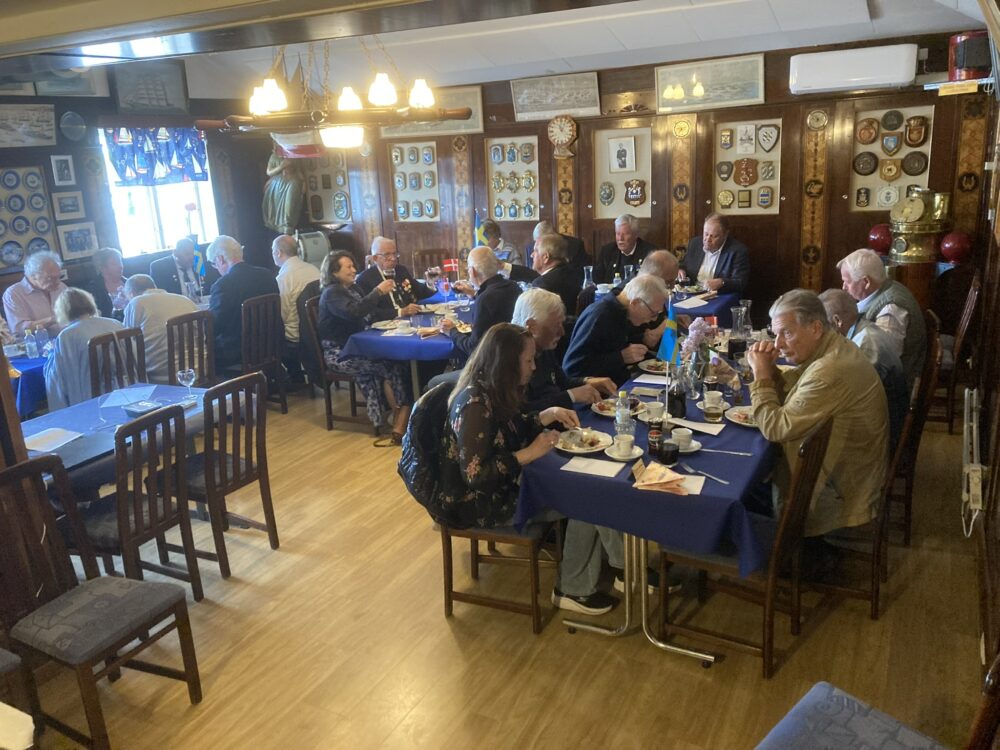 Maten som serverades var som vanligt helt perfekt och med tiden tömdes faten. Som vanligt var det hög stämning. Leif var allsångsledare och det sjöngs både på svenska och danska och det skålades åt alla håll.