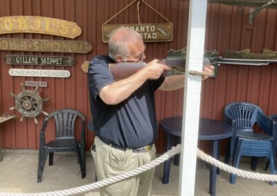 Nu var det så dags för de mytomspunna tävlingarna. Boule, luftgevärsskytte och slangbella. När det gäller luftgevärsskyttet så blev det till slut särskjutning. Men inte med luftgevär utan med luftpistol. Att skjuta med luftpistol visade sig inte vara helt enkelt.