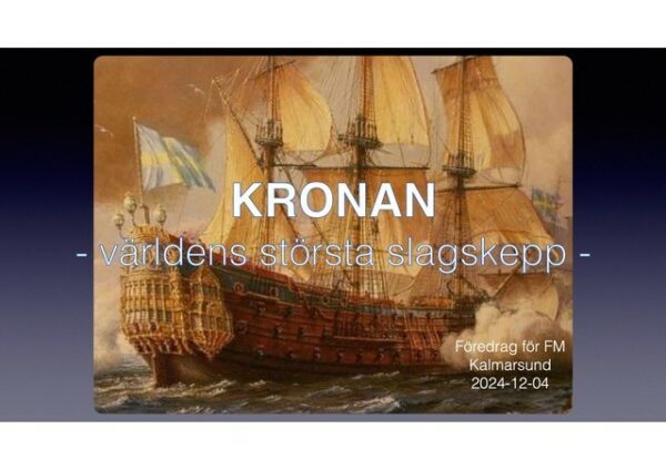 förlisningen år 1676. HMS Kronan var den tidens en av de tre största krigsfartyg i världen. Ulf:s redovisning och fresentation av den tidens marina fartyg blev