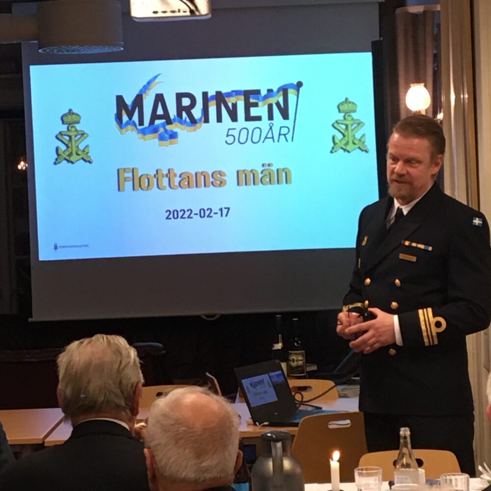 Efter måltiden berättade Örlkn. Johan Melin om hur program och upplägg kommer att vara kring firandet av Marinen 500 år. En mycket intressant och klar föredragning kring de platser och aktiviteter där firandet sker.