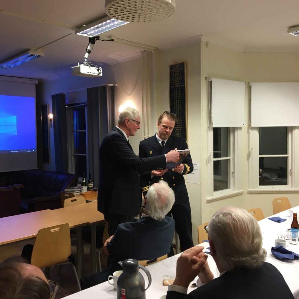 Som tack för ett uppskattat föredrag erhåller Johan boken ”Flottans Män berättar”.