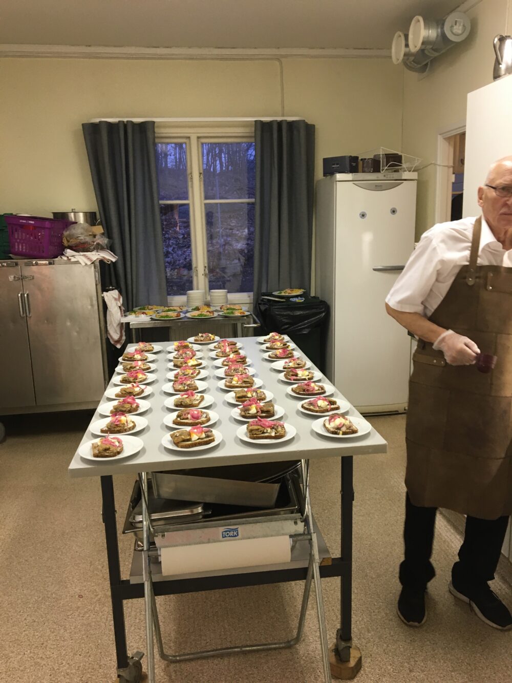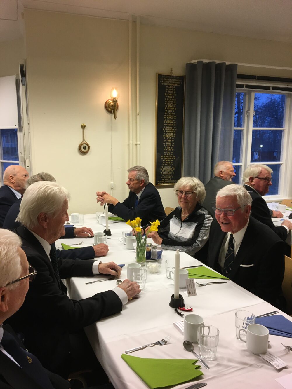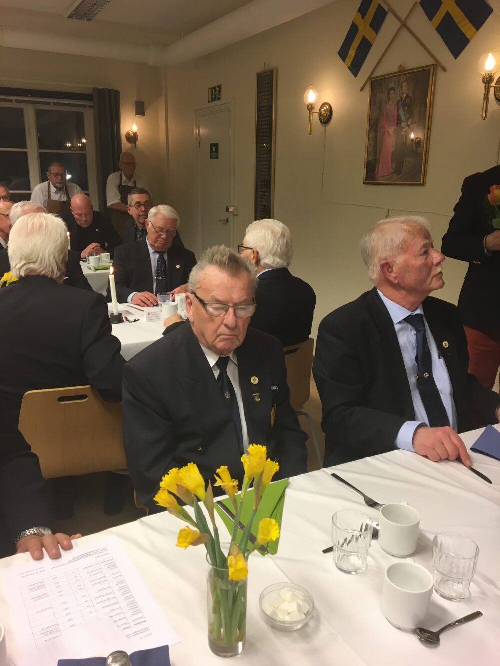 Efter årsmötet bjöds deltagarna på en förfriskning innan Ingvar Stenmark och Elving Gustafsson vid vackert dukade bord serverade en välsmakande 3-rätters meny , vilken alla njöt till fullo av.