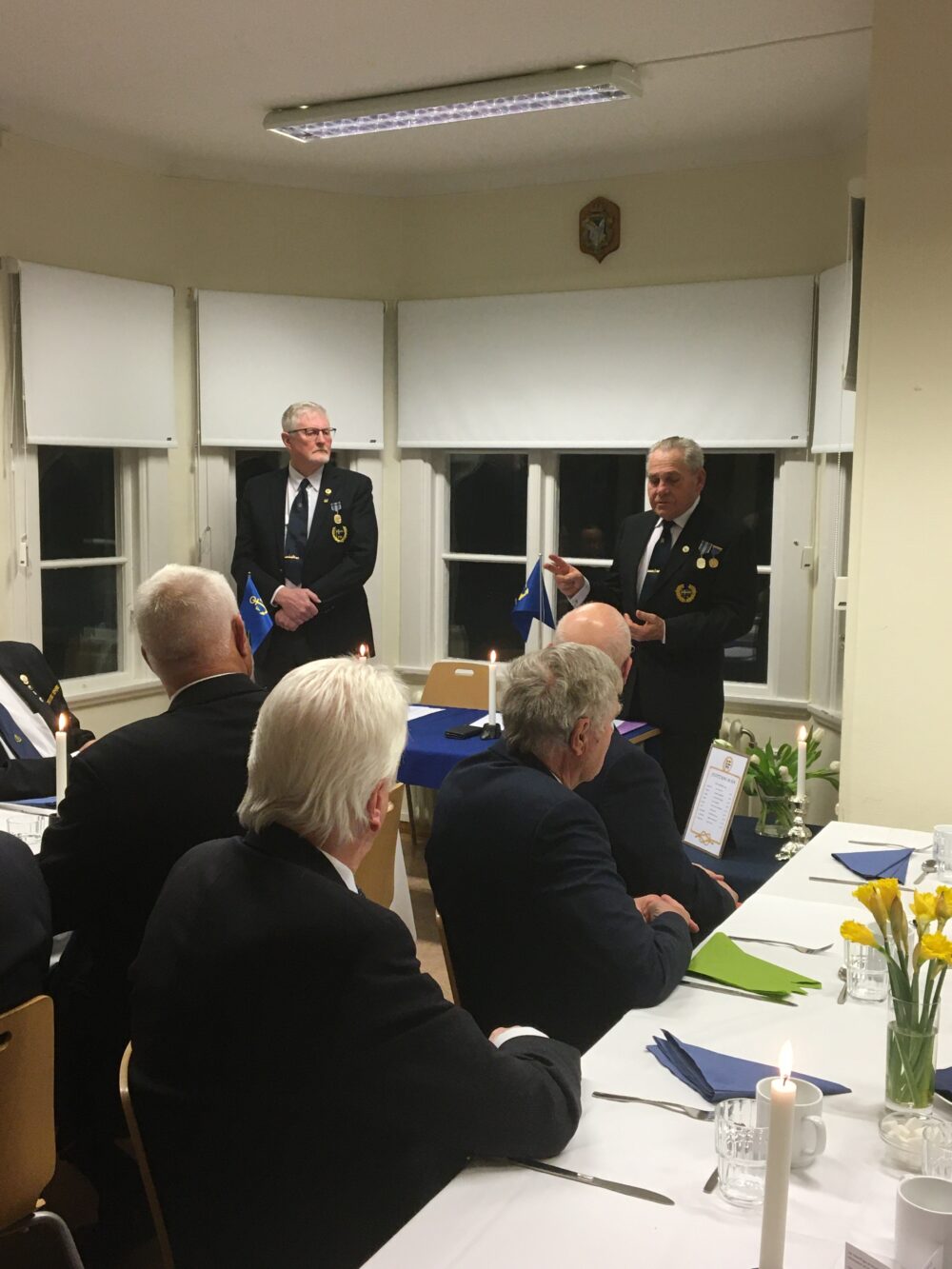Ordföranden dekorerade 4 medlemmar efter 18 års medlemskap med Flottans Mäns Veterantecken. Dessa är: Christer Cardell, Ernst-Olof Håkansson, Göte Nilsson och Christer Odebjer.