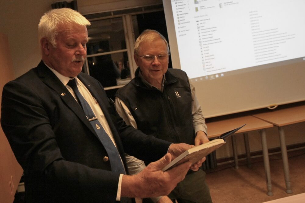 Anders Engblom avtackades med applåder och fick som tack av ordföranden ta emot boken ”Flottans Män berättar”.