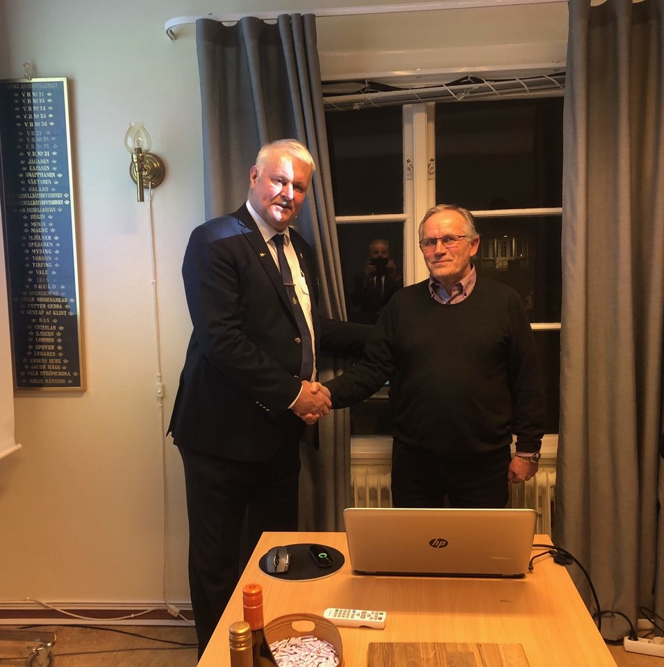 Bo Lindahl avtackades med kraftiga applåder och ordföranden överlämnade boken ”Flottans Män berättar” som tack för hans intressanta föredrag.