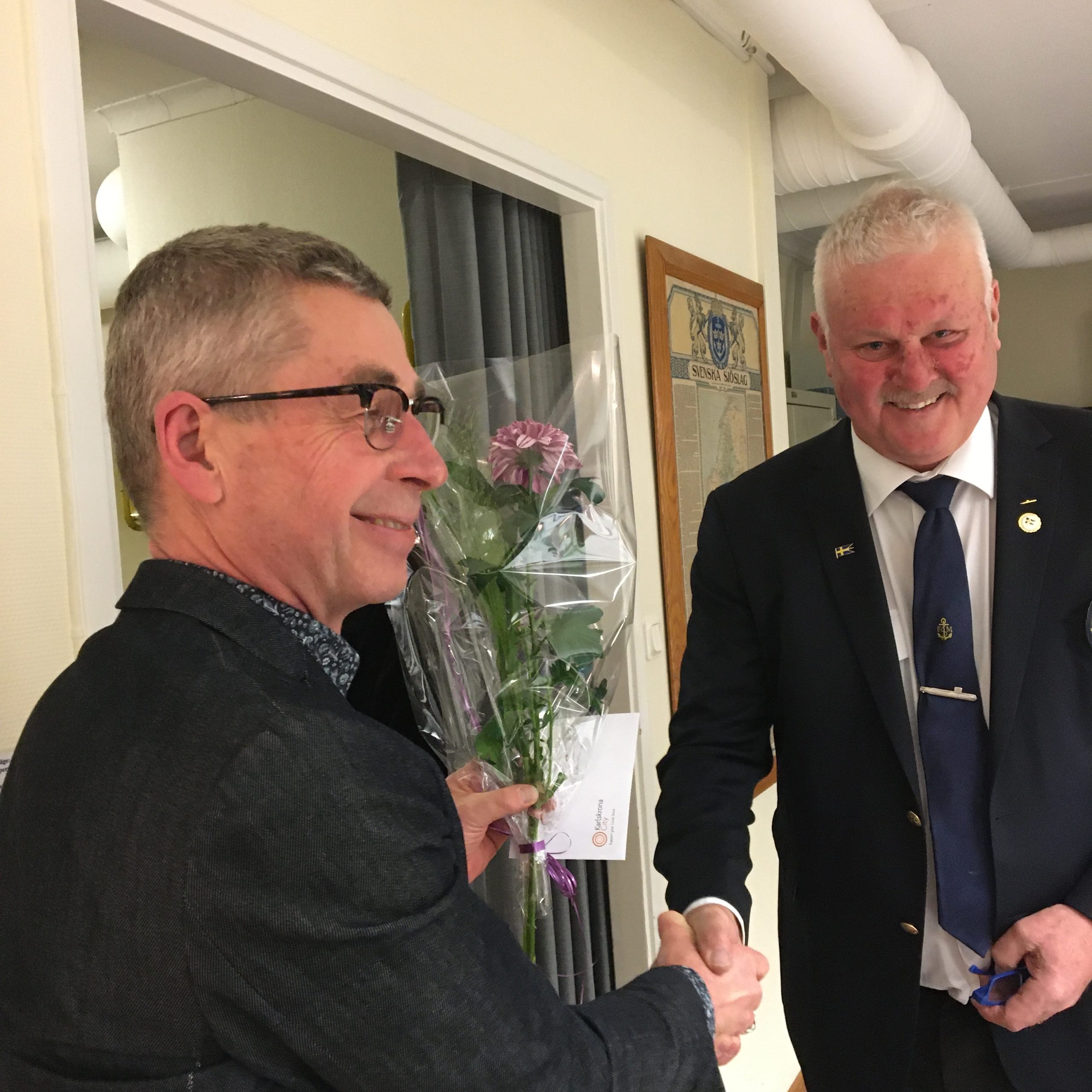 Ordföranden avtackade avgående styrelseledamoten Lars Gelderman med blombukett och presentkort.
