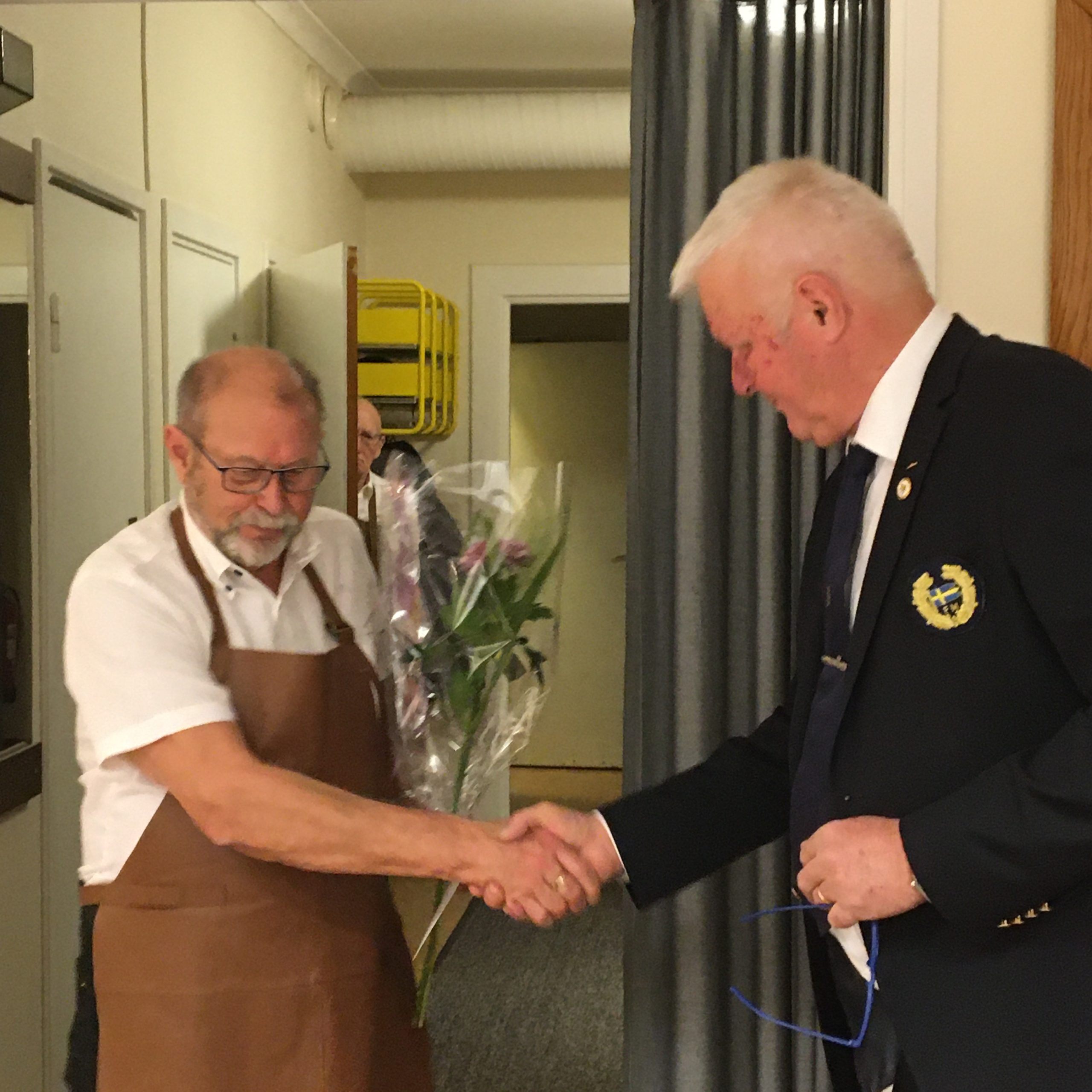 Klubbmästaren Ingvar Stenmark och assisterande klubbmästaren Elving Gustafsson avtackades av ordföranden Lars Sager. Deras insatser har varit av högsta klass under många år. De erhöll blommor och rungande applåder.