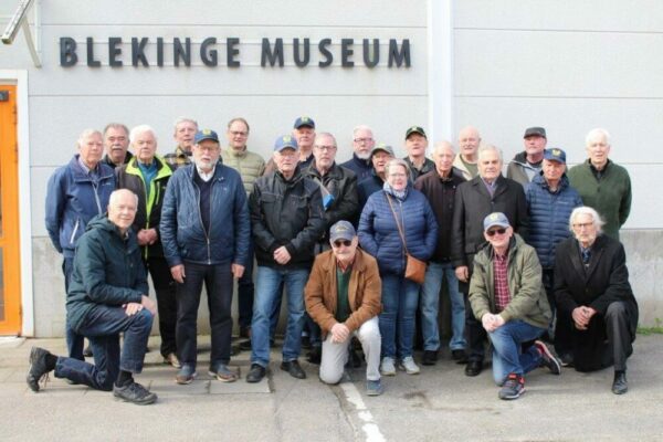 Den 18 april besökte 24 medlemmar Blekinge museums samlingar på Rosenholm. Samlingarna finns i fd. KA 2:s serviceförråd. Vi välkomnades av Hanna Sjöberg och Jonas Eckerbom som assisterade vid den obligatoriska gruppfotograferingen.