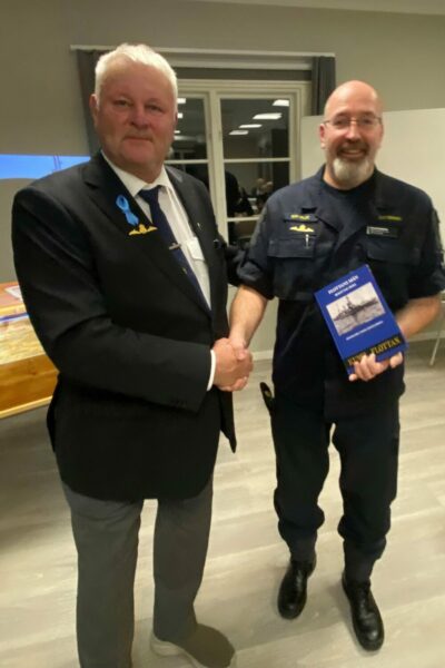 Vår senaste medlem Karl Bergström presenterade sig och redogjorde för sin gedigna bakgrund i Flottan.