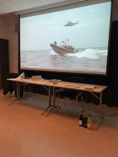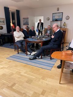 Han berättade om den dagliga verksamheten på divisionen, utbildningen till helikopterförare och även om deltagandet i insatsen i Adenviken tillsammans med HMS Carlskrona. Han avtackades med en bokgåva, ”Flottans Män berättar mera”. Efter medlemsmöte och föredrag vidtog sedvanlig middag med ärtsoppa, pannkakor och kaffe/kaka. Ett stort tack till Elisabeth och Carina som skötte förtäringen med den äran.