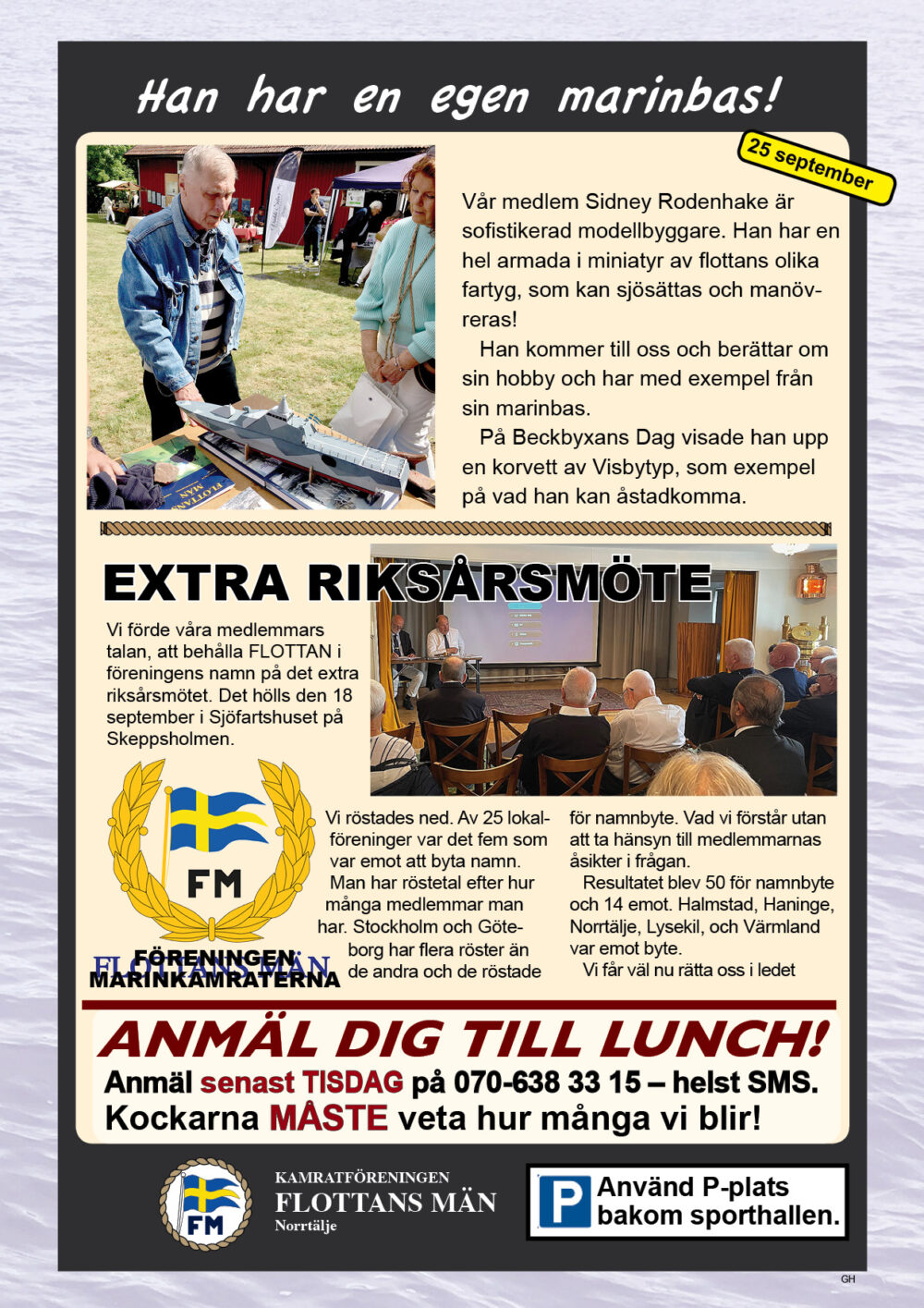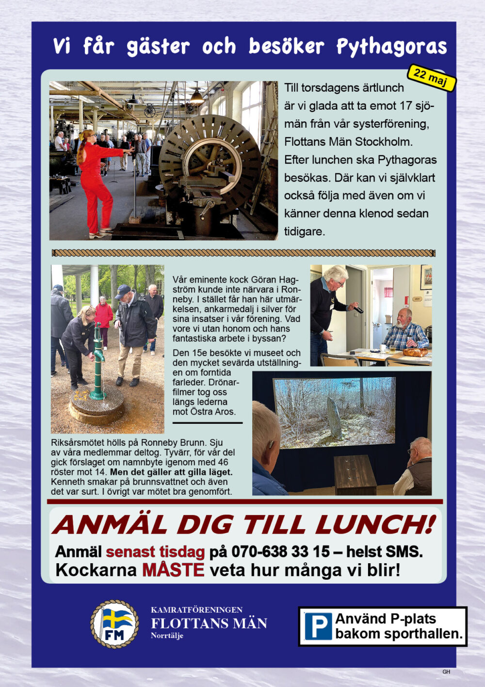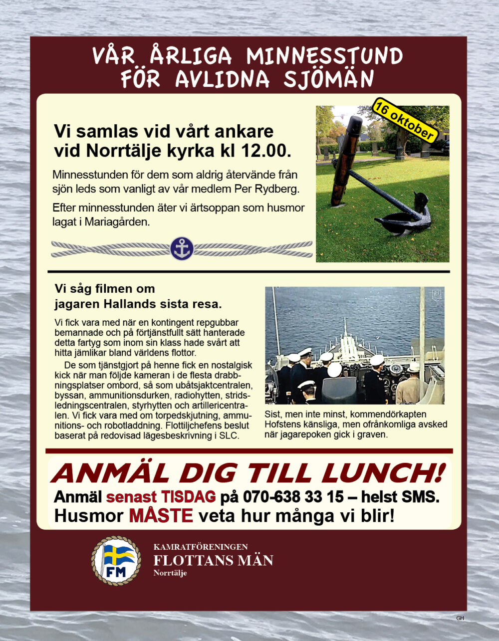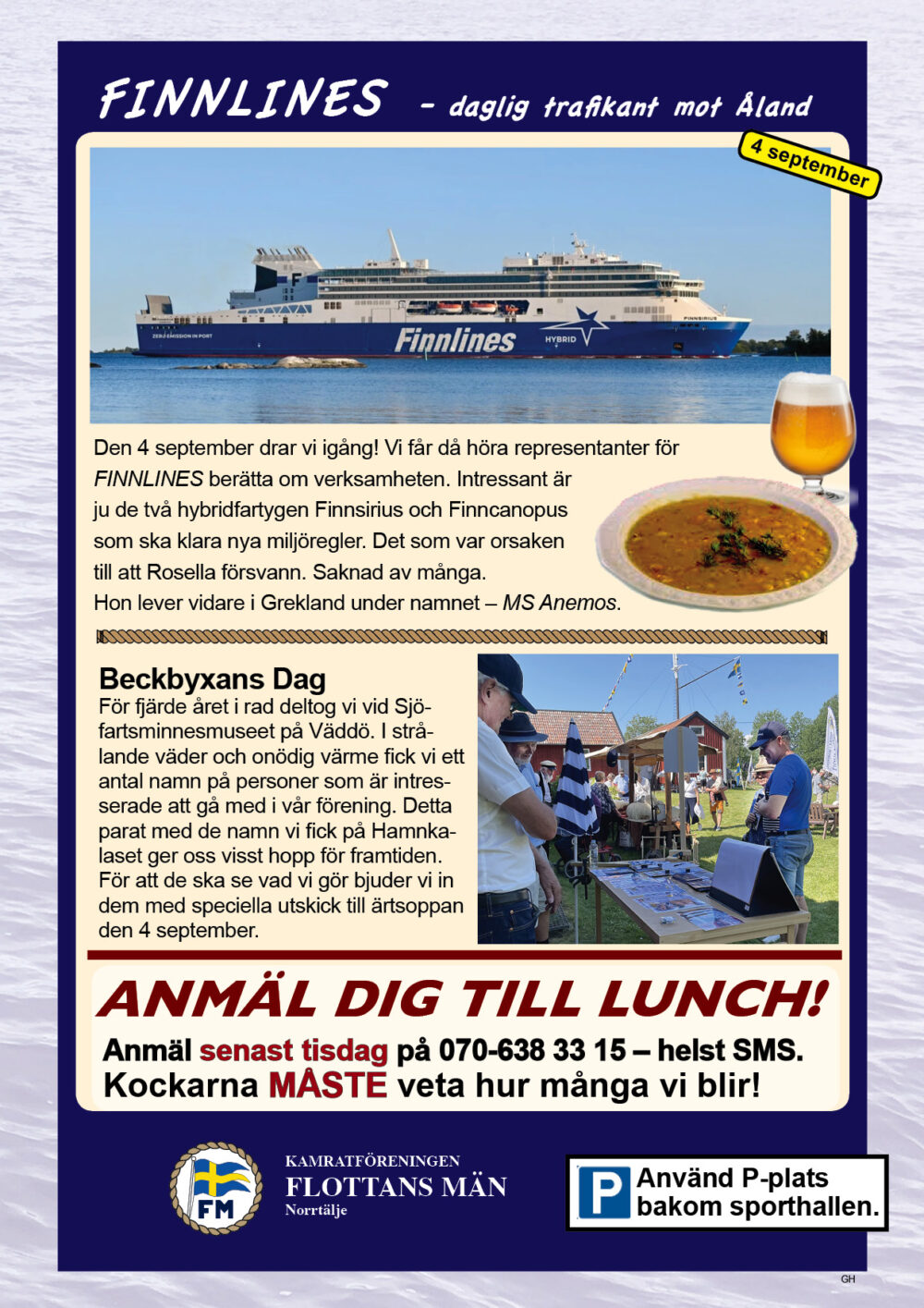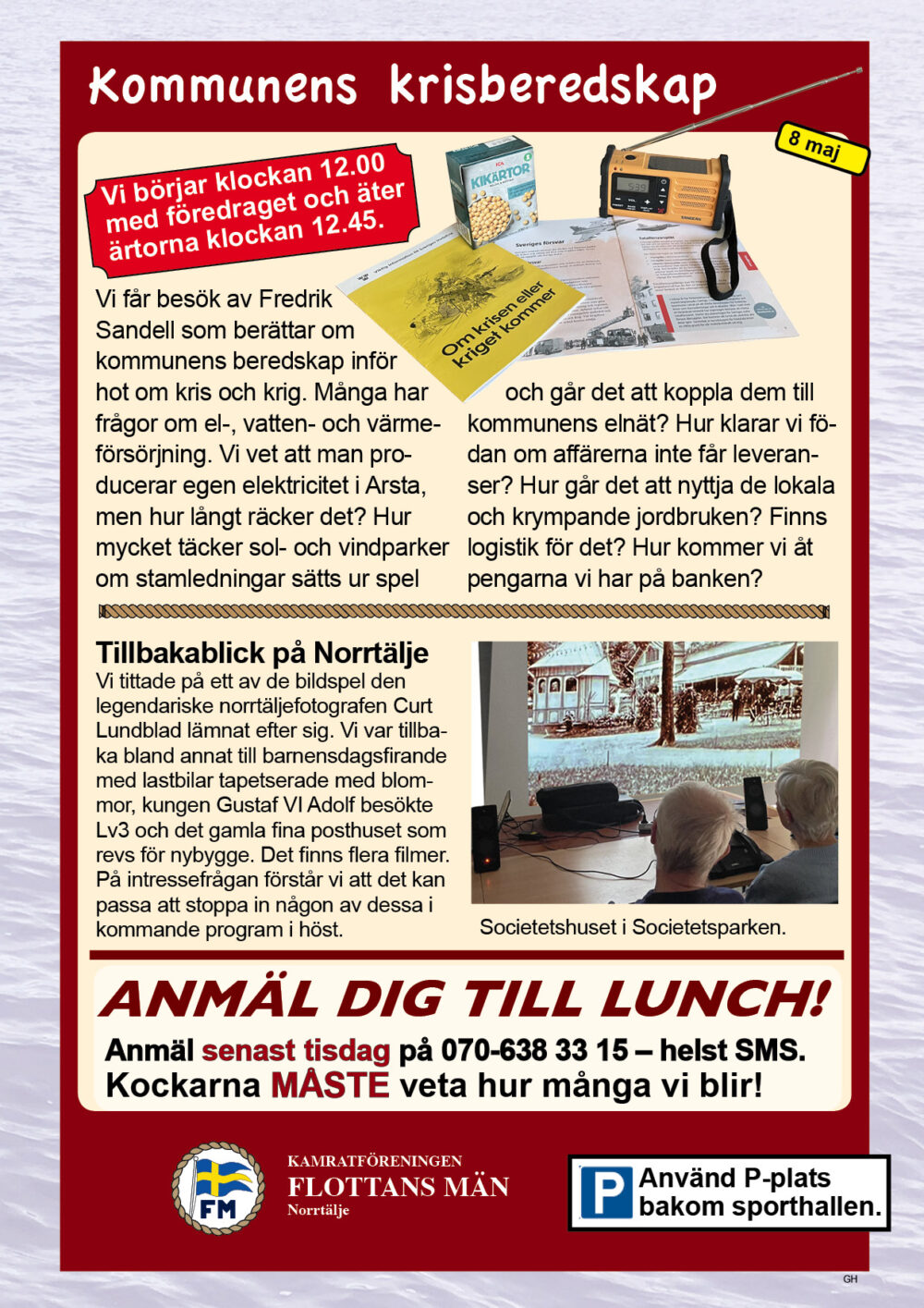 År 2025 namnbyte Här visas programmet för 2023.. 6 Februari Namnfråga 23 Januari Joseph 13 Febr Ubåt I NATO 20 Febr Resor I österled 27 Febr Marinchef Norleìn 25 April C Lundblad 8 Maj Kris Och Krig 15 Maj Roslagsmuseet 22 Maj Stockholmsför Besöker 5 Juni Sillunchen 4 September Finnlines 25 Sept Rodenhake 25 Sept Rodenhake 2 Oktiber Hemberedskap 9 Oktober Film Kustflottan Och 1916 1976 16 Okt Ankaret 23 Oktober Ordet Fritt 6 November 13 November 27 Nov Finnline O CWH 4 Dec Julkorv