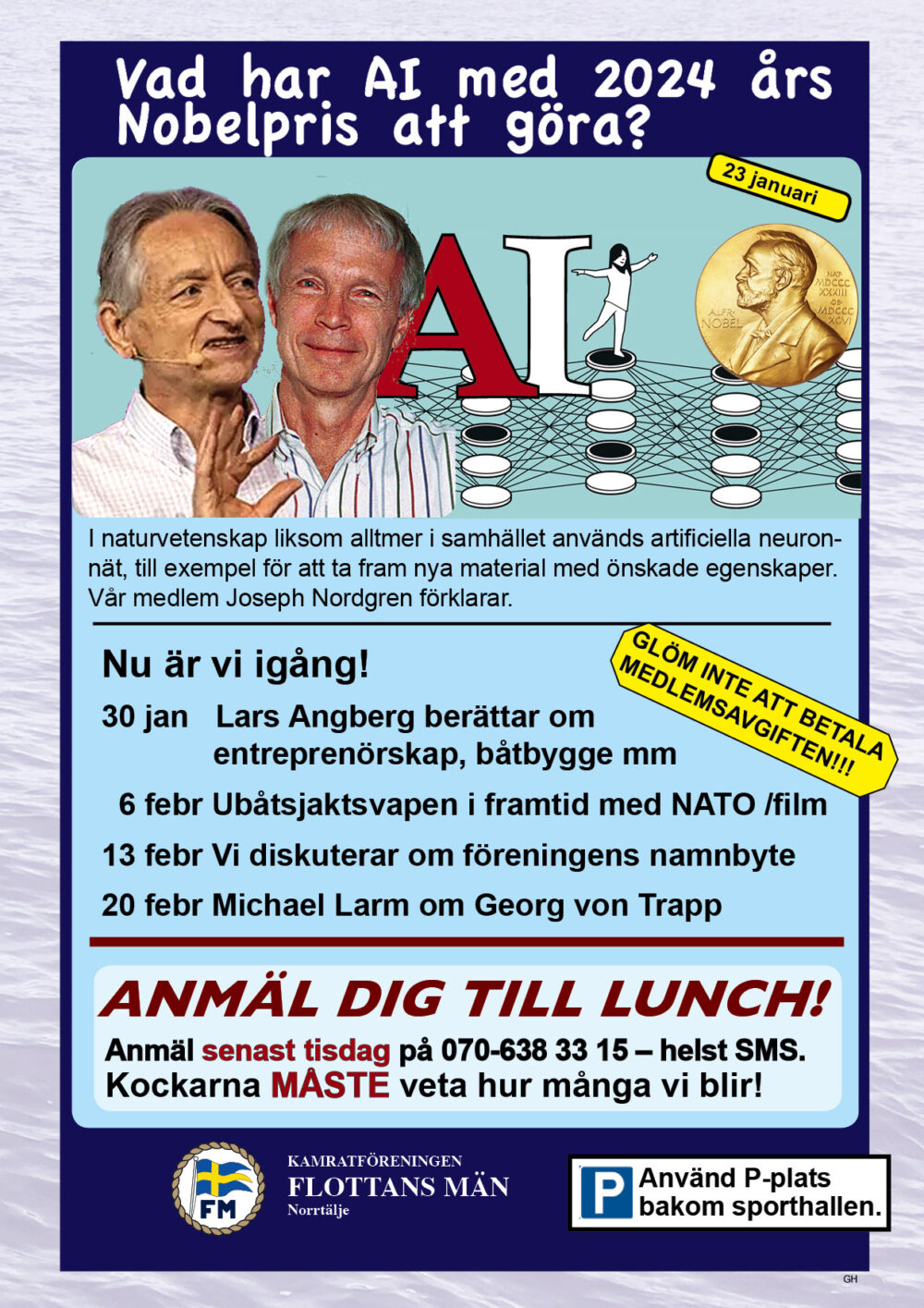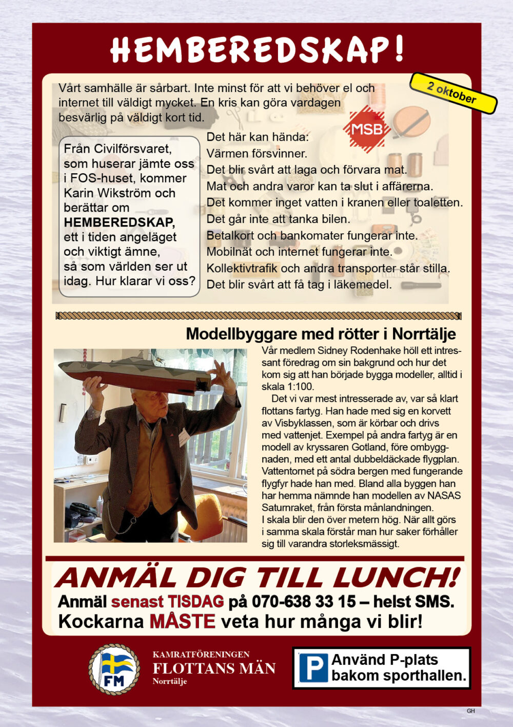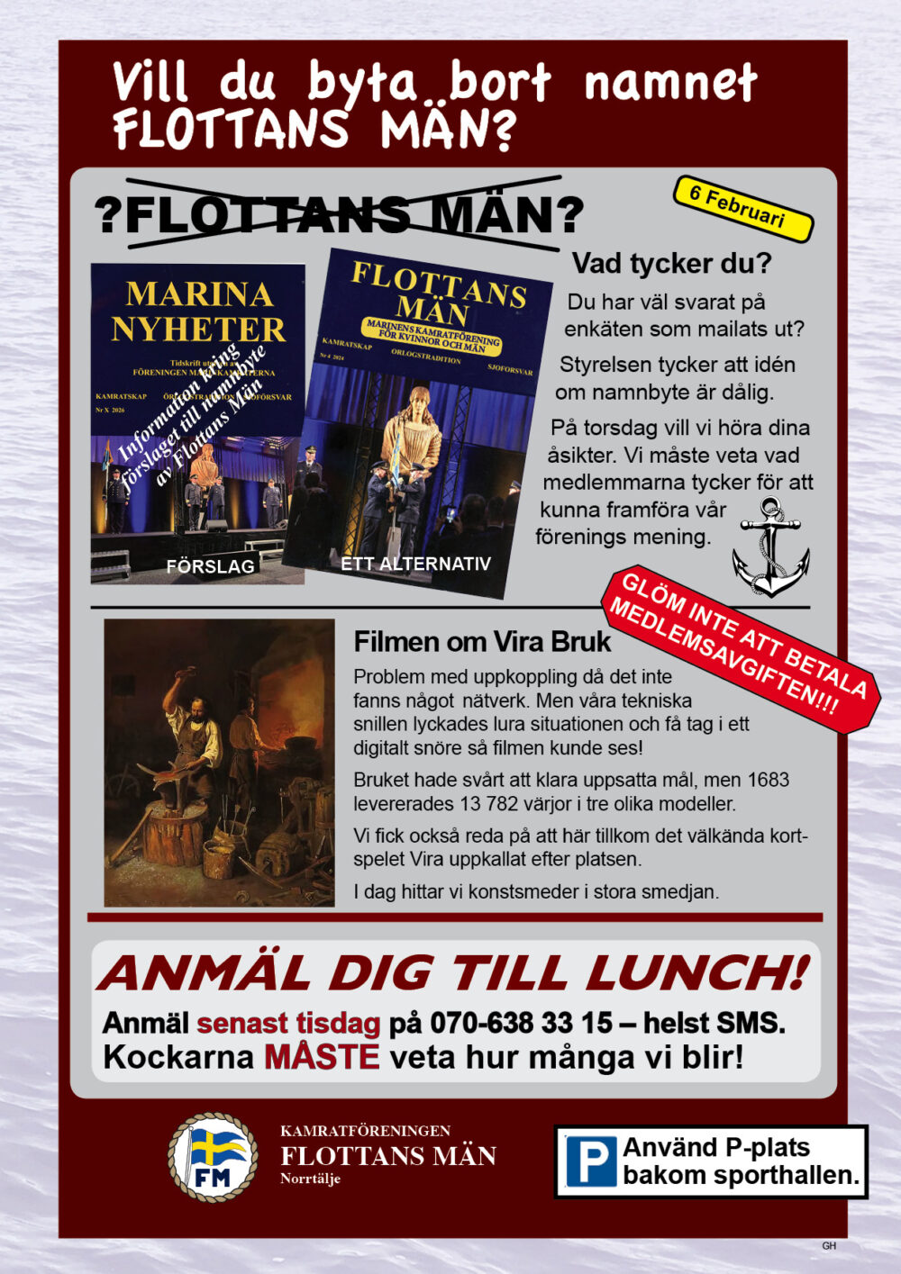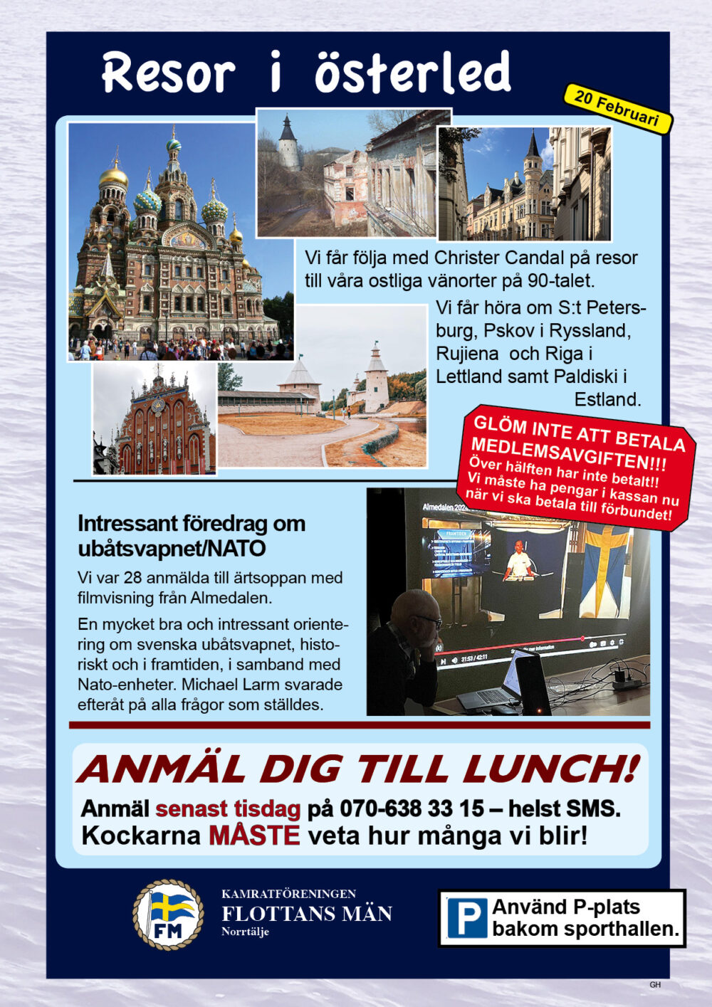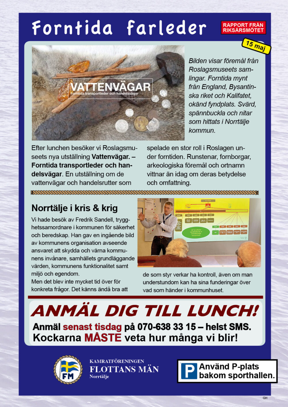År 2025 namnbyte Här visas programmet för 2023.. 6 Februari Namnfråga 23 Januari Joseph 13 Febr Ubåt I NATO 20 Febr Resor I österled 27 Febr Marinchef Norleìn 25 April C Lundblad 8 Maj Kris Och Krig 15 Maj Roslagsmuseet 22 Maj Stockholmsför Besöker 5 Juni Sillunchen 4 September Finnlines 25 Sept Rodenhake 25 Sept Rodenhake 2 Oktiber Hemberedskap 9 Oktober Film Kustflottan Och 1916 1976 16 Okt Ankaret 23 Oktober Ordet Fritt 6 November 13 November 27 Nov Finnline O CWH 4 Dec Julkorv