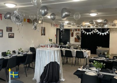 Lokalen är lämplig för fester och andra typer av arrangemang såsom föreningsmöten föreläsningar etc.
