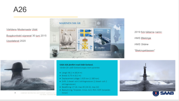 Den 12 maj var Malin Anselmsson på besök hos Flottans Män i Trelleborg för att berätta om Projektet A26: lite om båtarna som man bygger men mer om själva utvecklingen av en ny modern Svensk Ubåt: Utmaningarna utöver att bygga båt.