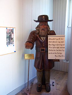 Den gamla träfiguren av Rosenbom inne i kyrkan.