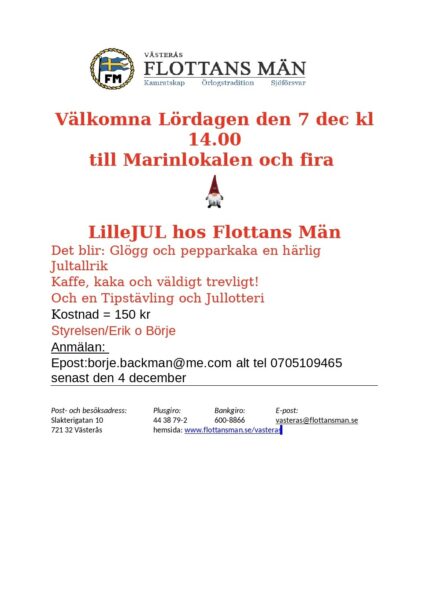 Välkomna Lördagen den 7 dec kl 14.00 INSTÄLLT!