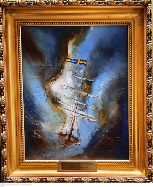 Beställdes i maj 2024 för att överlämnas till Flottans män Västerås som minnesgåva efter Conny Byqvist som varit medlem i föreningen sedan avslutad värnplikt på Jagaren Småland 1970. Tavlan är också ett Tack för föreningens fanvakt vid begravningen. Målningen är gjord i olja av Anna-Moa Vanky som är 47 år. Tavlan som överlämnades på Flottans Mäns medlemsmöte 27 november, har målats med stor inspiration från den engelska konstnären William Turner. Anna-Moa målar oftast i olja och älskar att ge sina tavlor djup, genom ljus och mörker. Motivet är ett svenskt örlogsfaryg som stävar fram genom en storm för att delta i slaget vid Svensksund, en av de största segrarna för Sveriges flotta. Slaget stod mot Ryssland 9 juli 1790.