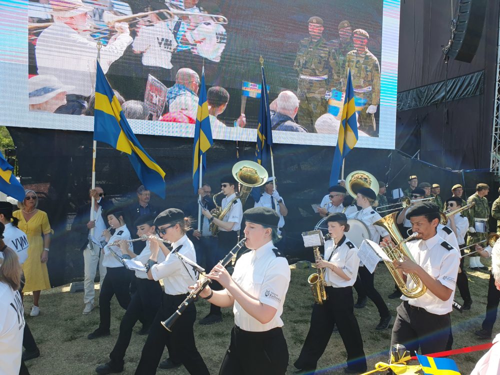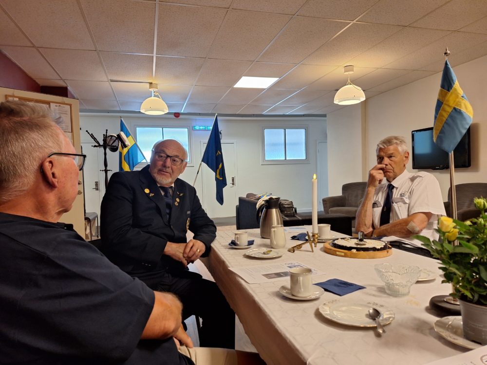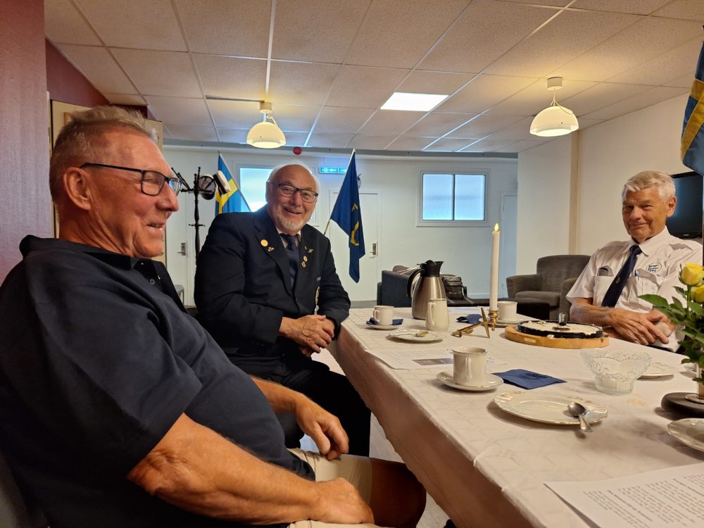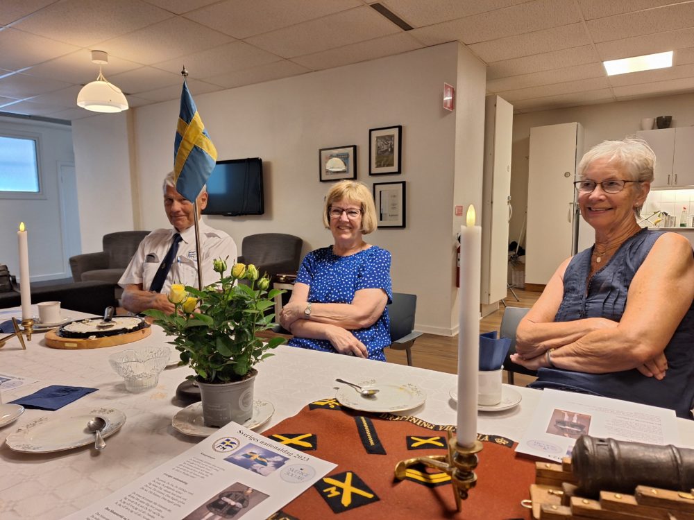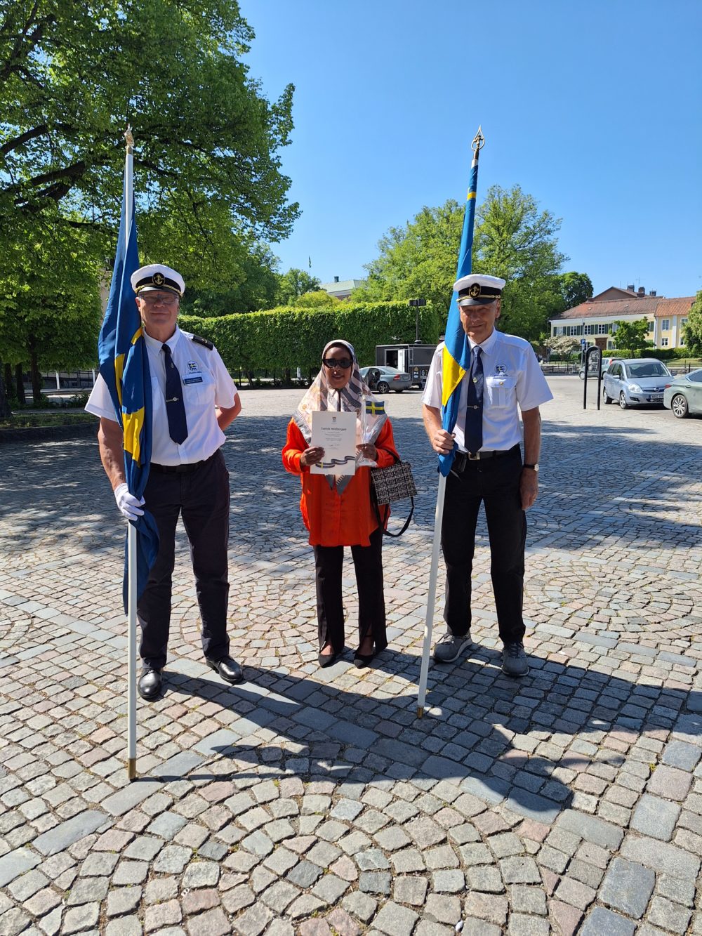 Flaggmarschen utgår från Fiskartorget i centrum av Västerås och går till Djäkneberget. En lustig sak är att nyblivna svenska medborgare gärna vill låta sig fotograferas med oss. Nationaldagen avslutades i sedvanlig ordning med fika och tårta i Marinlokalen.