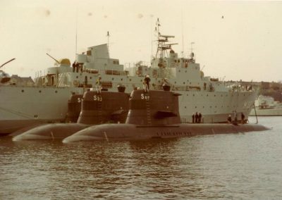 Skeppsholmen 1972, Kristi himmelfärdshelgen. HMS Sjöormen ligger förtöjd vid sidan av HMS Älvsborg tillsammans med HMS Sjöbjörnen och HMS Sjöhunden.