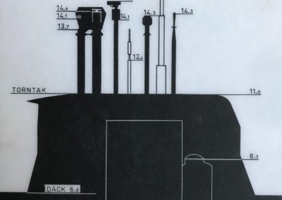 HMS Sälen, HMS Gripen och HMS Nordkaparen på BB-sidan samt HMS Sjöhunden, HMS Sjöbjörnen och HMS Sjöormen på SB-sidan.
