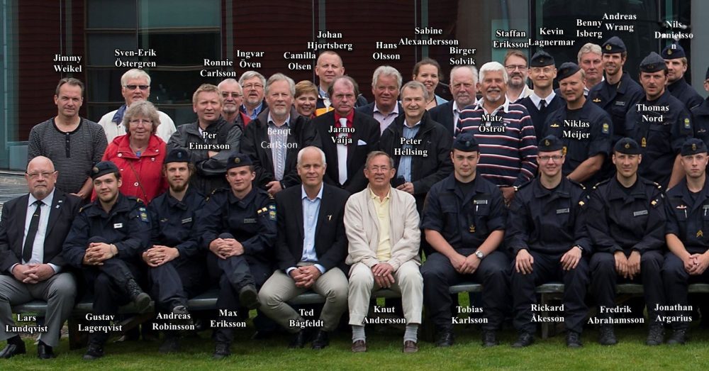 Bilder på Ubåtsklubben Hajens medlemmar tagna samband med förhandsvisningen inför invigningen av ubåtshallen i juni 2014 på Marinmuseet i Karlskrona